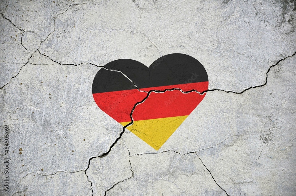 Germany national flag symbol in the shape of a heart on a cracked concrete wall.