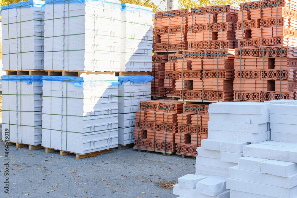 Building material on the outdoor market: ceramic bricks and aerated concrete blocks, gas blocks