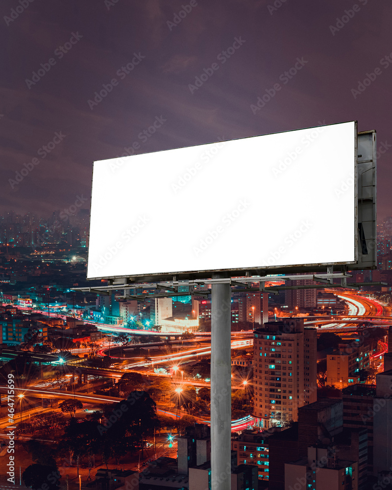 Blank Empty billboard mockup with white screen against clouds and blue sky background. Copy space banner for advertisement. Space for text.