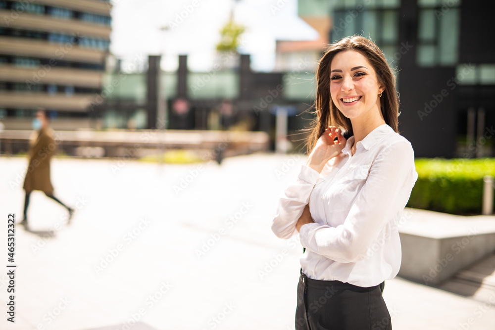 Young business woman in a city square