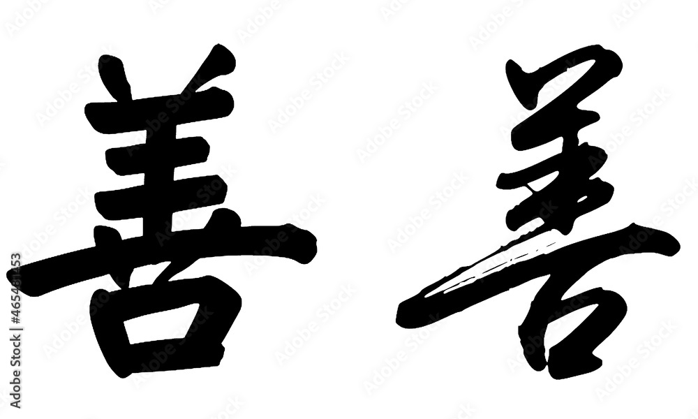 Chinese Calligraphy shan -- good (virtuous), benevolent, well-disposed