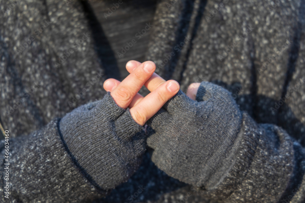 Gesture with hands and fingers crossed in the form of a lattice