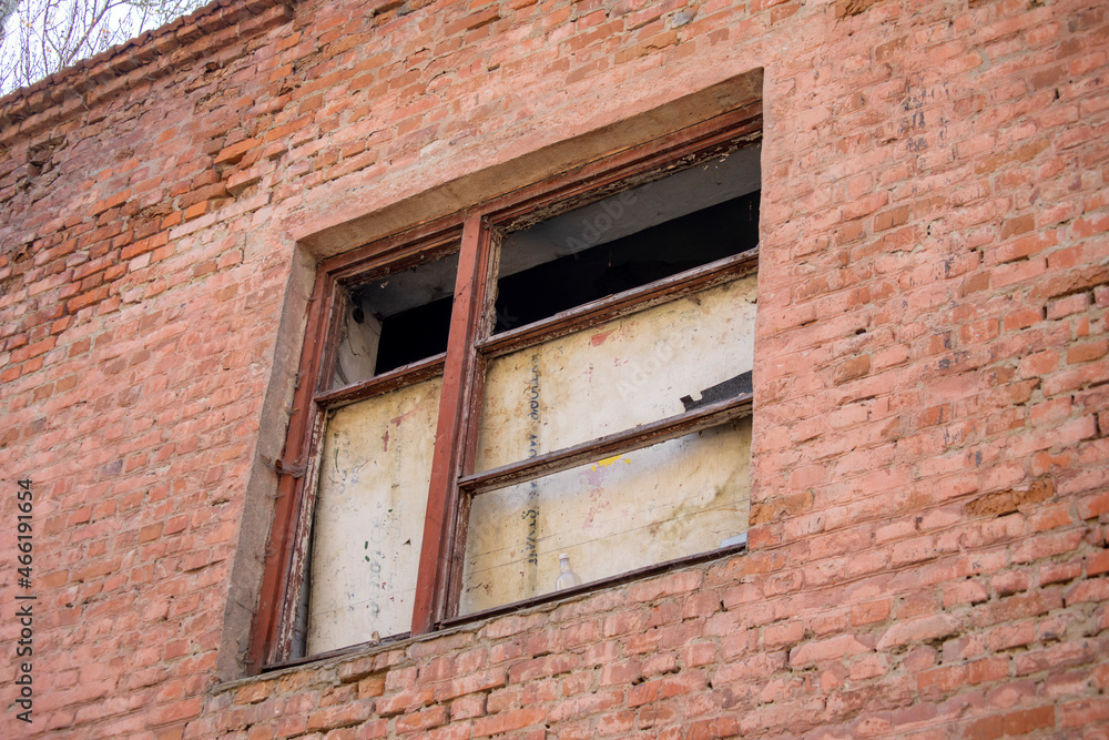 Old emergency abandoned brick building