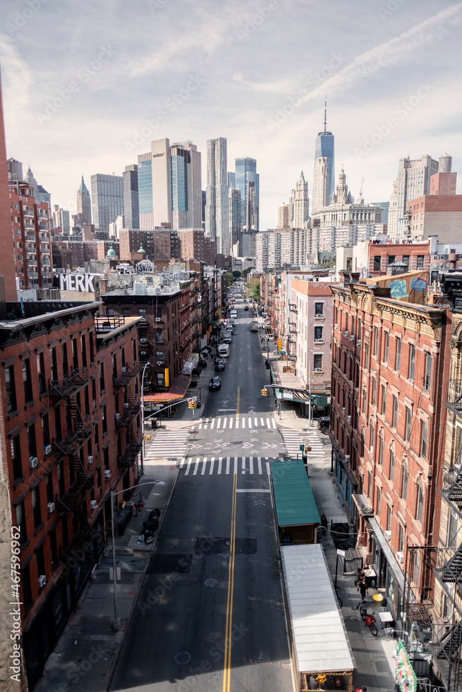 Manhattan New York View from Brooklyn Bridge in spring daylight