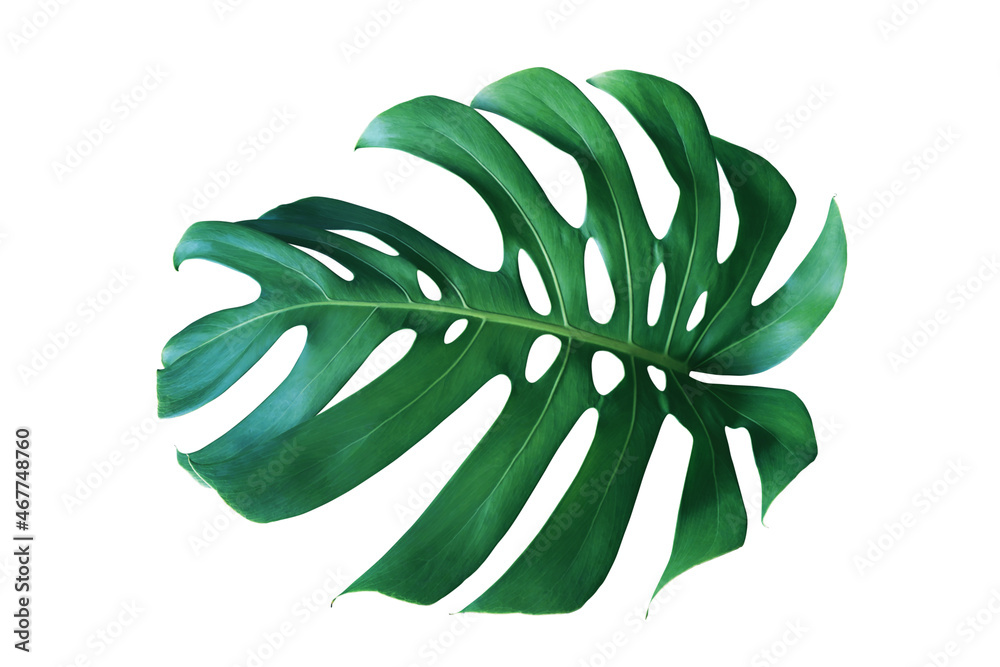 Green Leaf of Monstera Plant Isolated on White Background with C