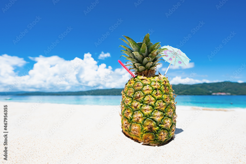 cocktail in pineapple on the sand