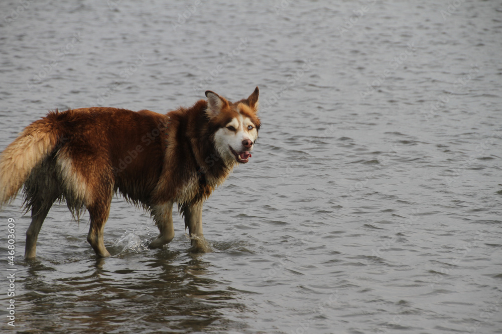 Husky in der Nordsee