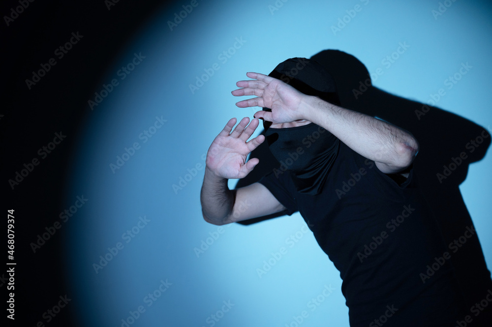 ホームセキュリティに使えそうな逃走中に見つかってライトを浴びる強盗1 アップ コピースペースあり