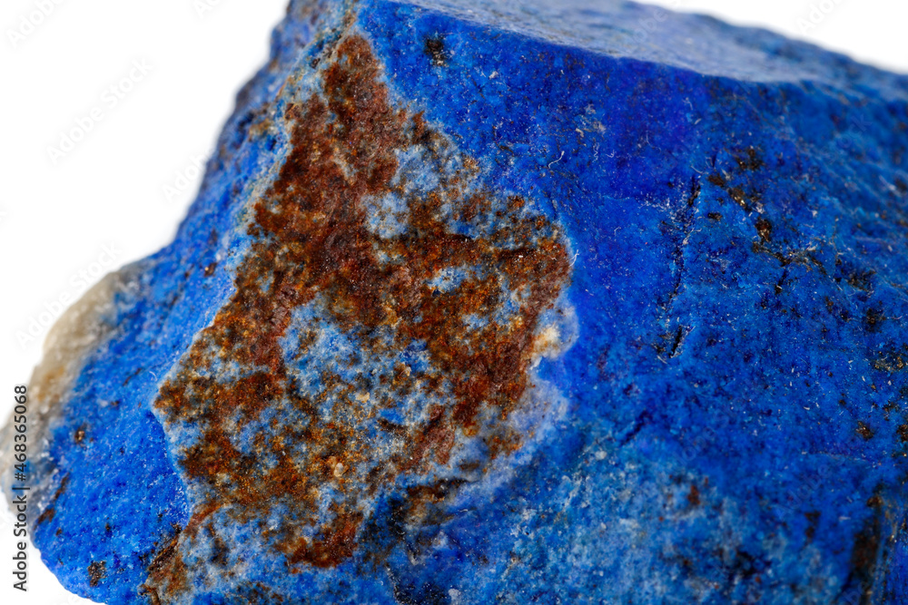 Macro Azurite mineral stone with Pyrite inserts on a white background
