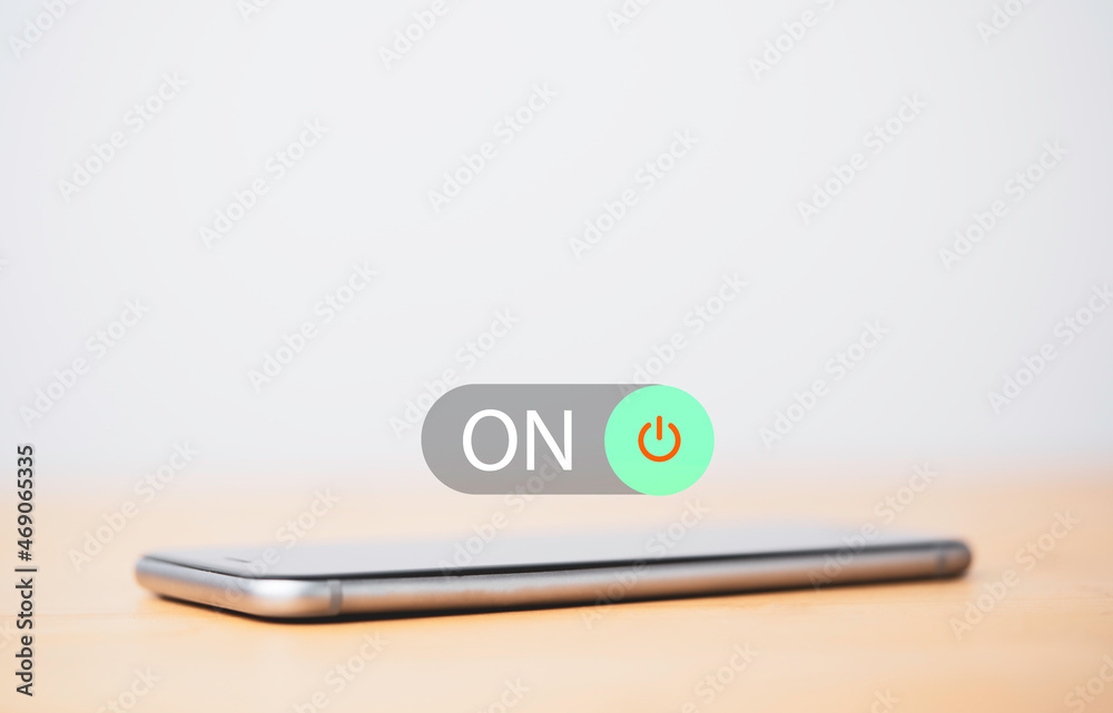 Smartphone with toggle switch button for change from off to on status.