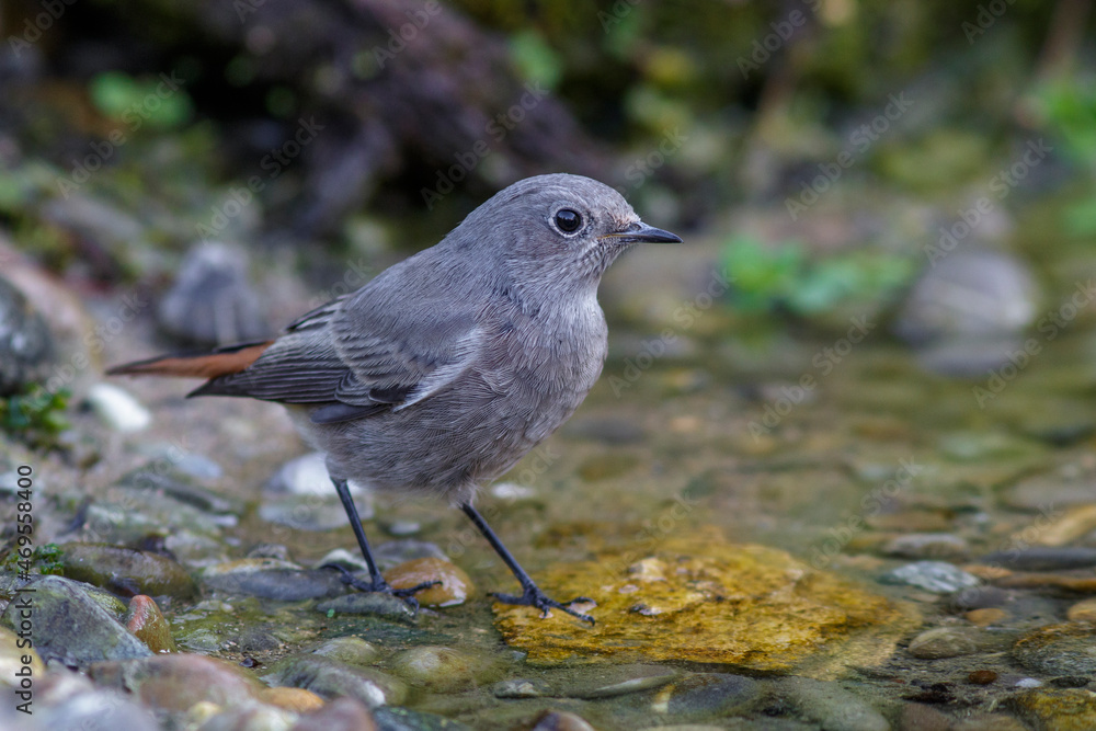 Hausrotschwanz (Phoenicurus ochruros) Weibchen badet