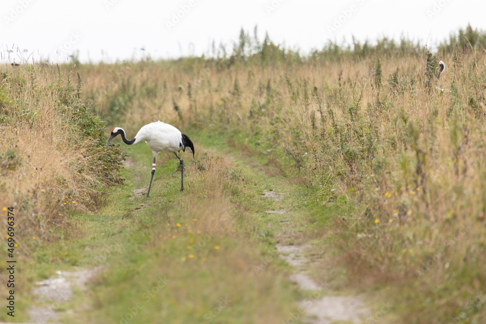 A ringed female red-crowned crane. Kunashir Island. South Kuriles