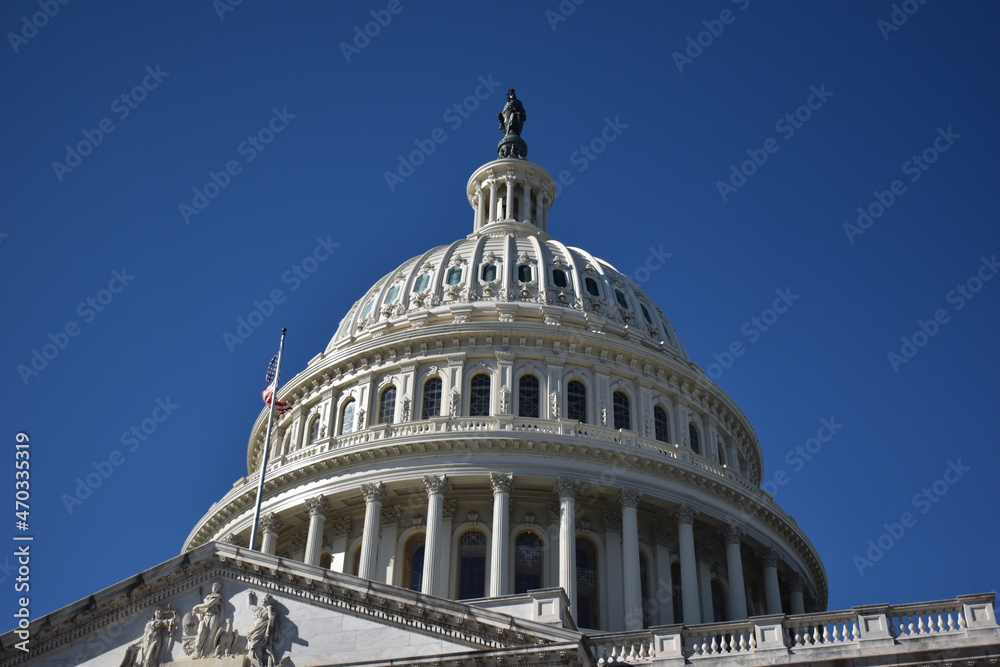 Washington, DC, USA - November 1, 2021: Looking Up at the U.S. Capitol Building from the Stairs on the East Side on a Bright, Clear Day in Autumn