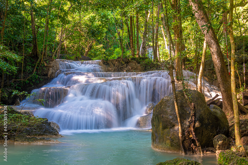 Ethereal waterfall in Erawan National Park in Kanchanaburi Province Thailand