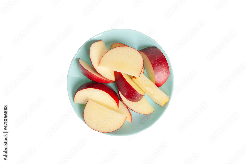 fresh apple slices on a plate isolated on white background