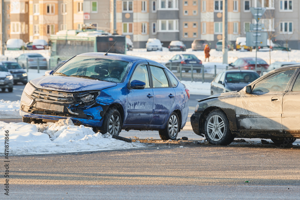 car crash accident on street. damaged automobiles