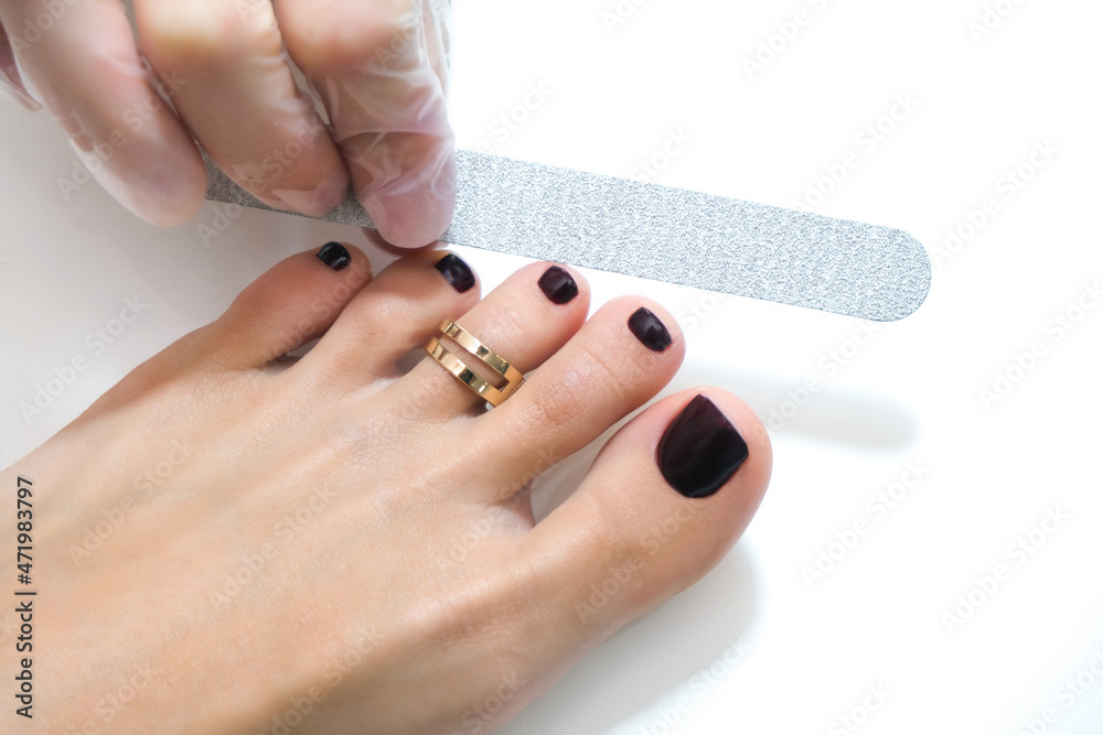 medical pedicure with a nail file. Foot peeling procedure