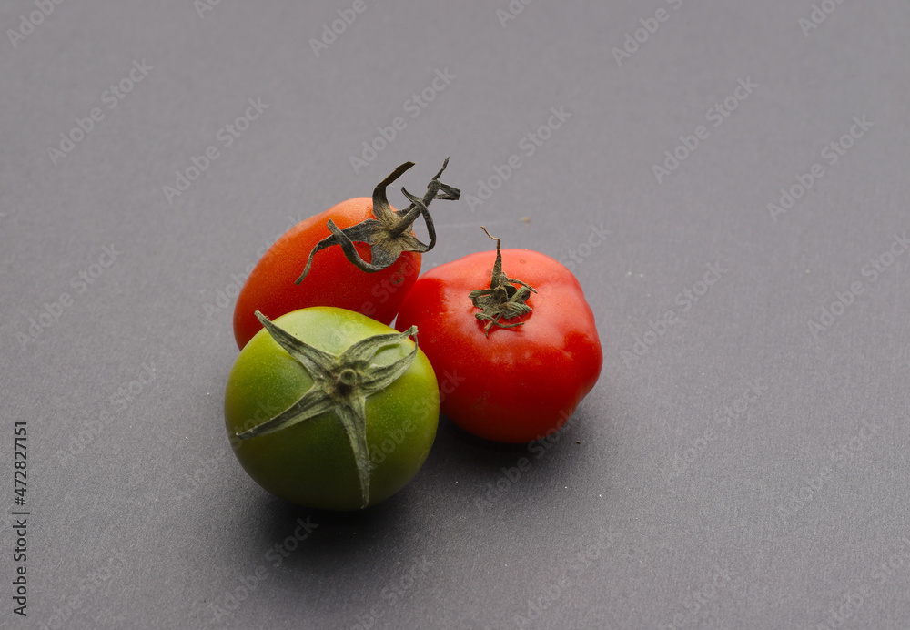 Colorful fresh organic healthy tomatoes on black background…