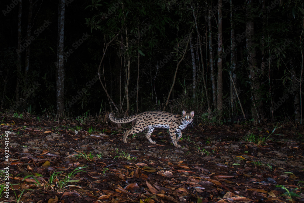 Leopard cat at the night in forest, Thailand