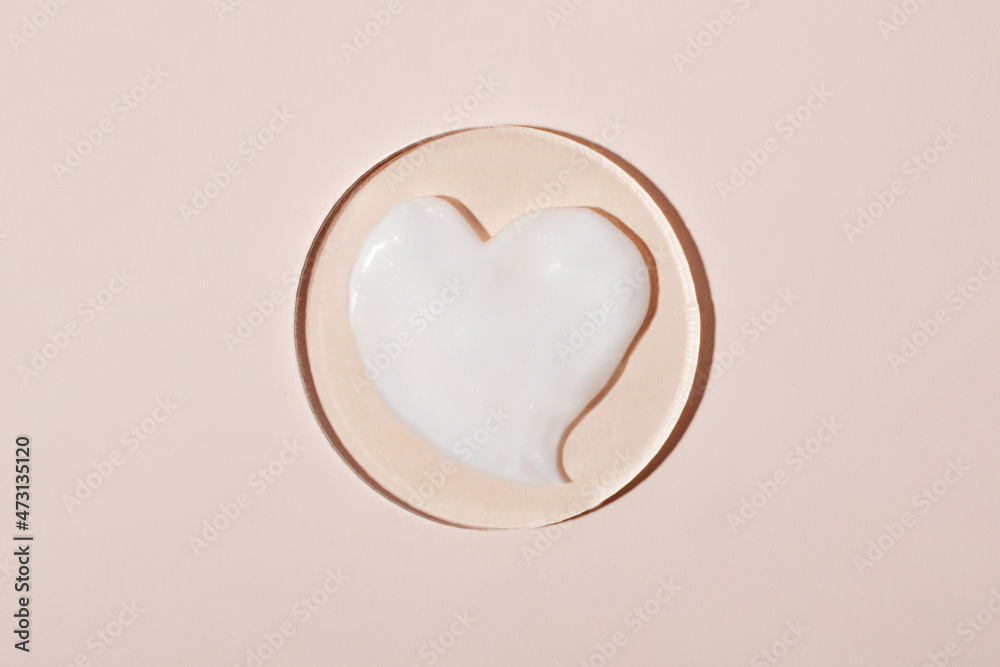 Swatch of cosmetic cream in form of heart.Pastel background,good as mockup.