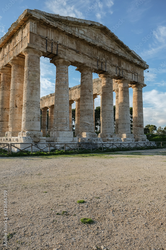 Ancient historical landmark Segesta archaeological site of historic Greece temple ruin in Sicily Italy near Trapani, sightseeing in beautiful nature landscape in sunlight