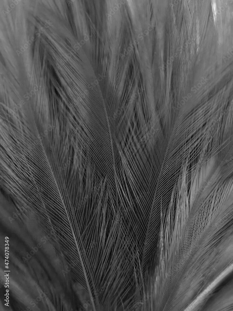 Beautiful abstract black feathers on white background and soft white feather texture on white texture pattern, dark theme wallpaper, gray feather background, gray banners, white gradient