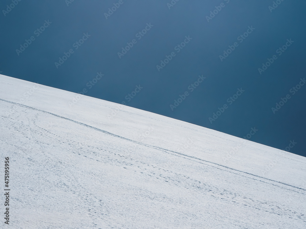 Ski slope. Snow mountain and dark blue sky. Beautiful minimalistic landscape of white snow hill.