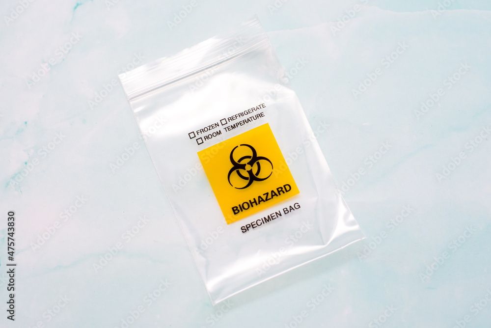 Empty bag for medical discarded biohazard biowaste.