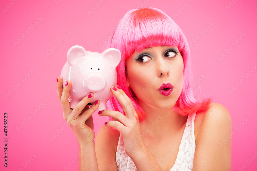 Woman checking her piggy bank
