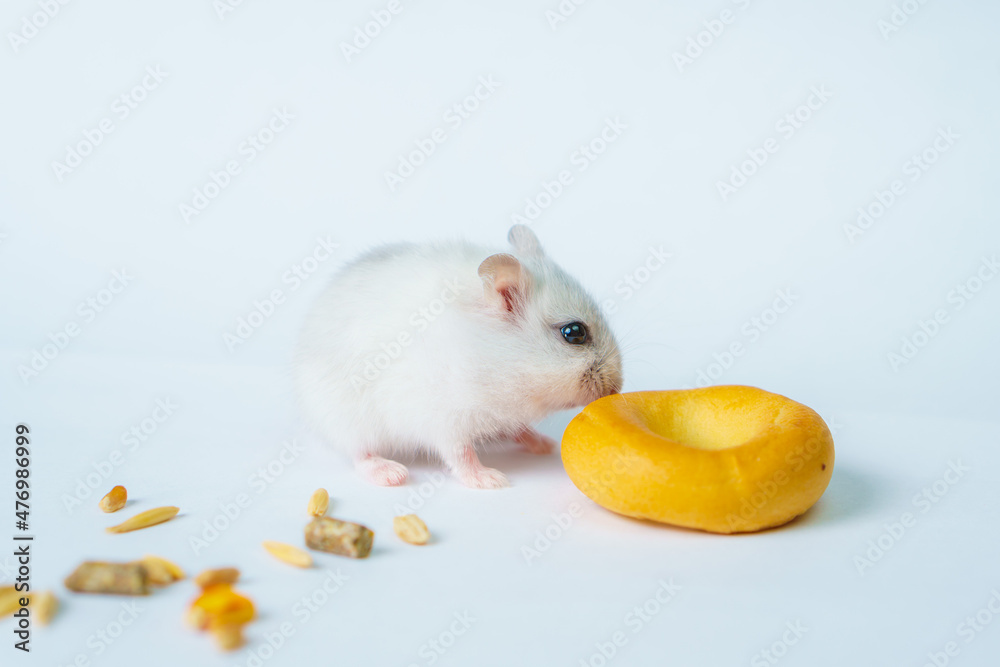 Small white hamster, on a white background.