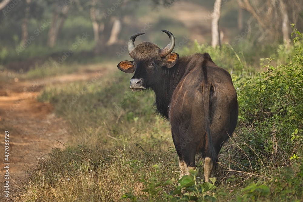 Indian Gaur or Bison at Bandipur National Park with beautiful background