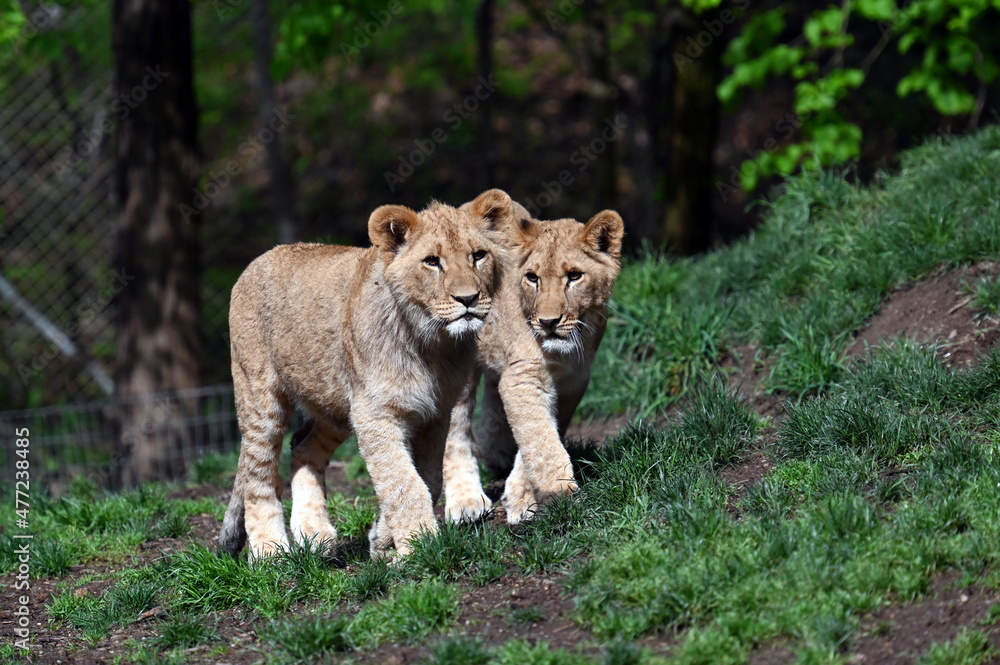 African Lion Pair of Subs Walking