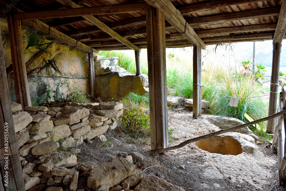 A close up on an old abandoned house with its roof almost entirely covered with vines and with other flora and with some decorations around the windows seen in the middle of a dense forest or moor