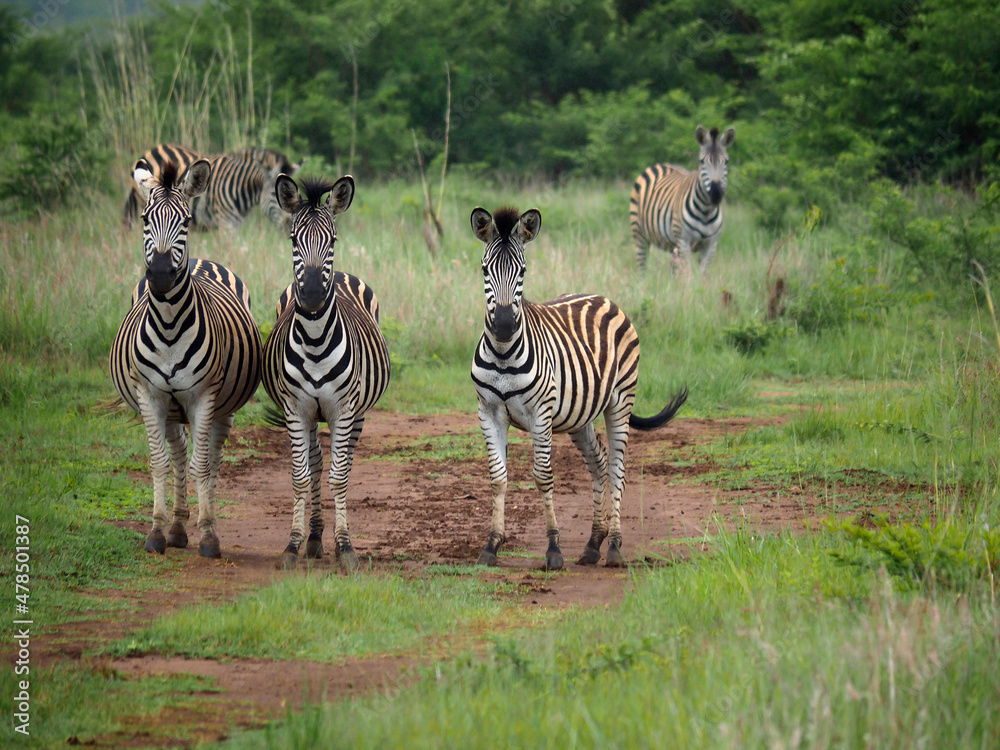 Small group of Plains Zebra (Equus quagga, formerly Equus burchelli) on the Veld in Zimbabwe