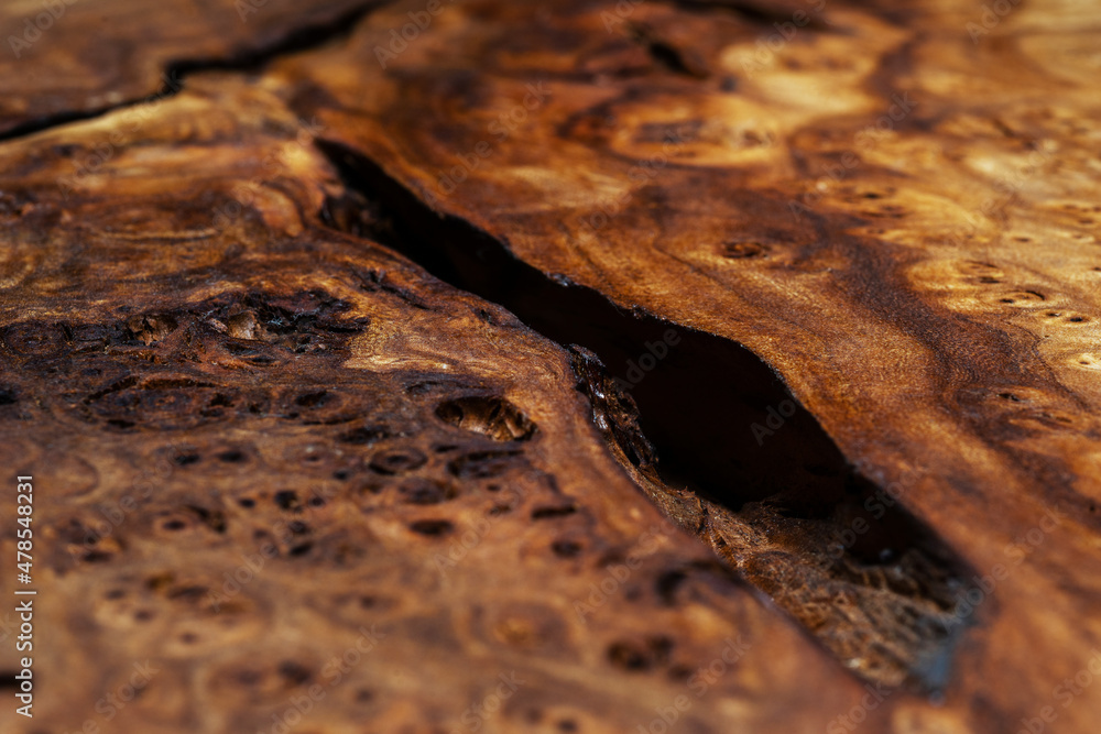 Extreme close-up, wood texture, wooden countertop slab, saw cut wood on black. Isolate.