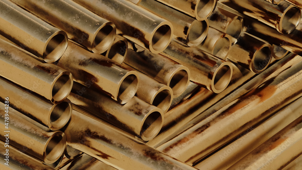 Background of pipes bronze brass metal 3d image round shape engineering profile spout