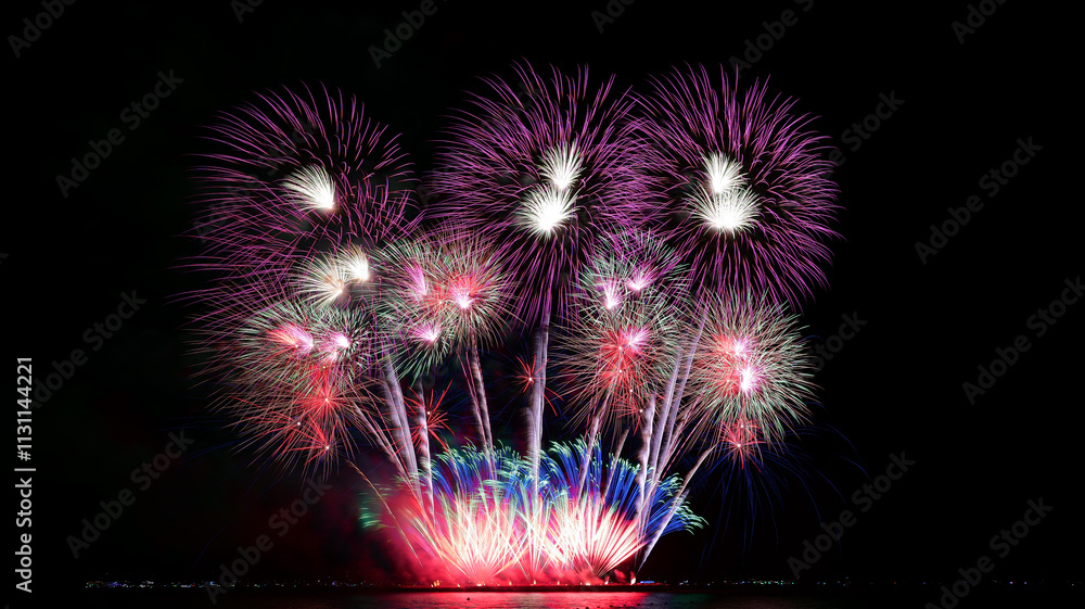 Panoramic banner with spring image - border of branches of fresh young greenfoliage and orange butterfly in rays morning sun outdoors in nature. Selective soft focus.