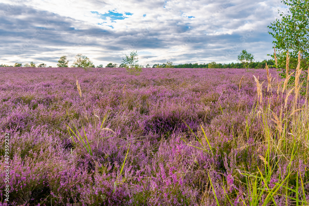 Lüneburger Heide am Wietzer Berg am Abend bei der Heideblüte Hügelgräber am Wietzerberg
