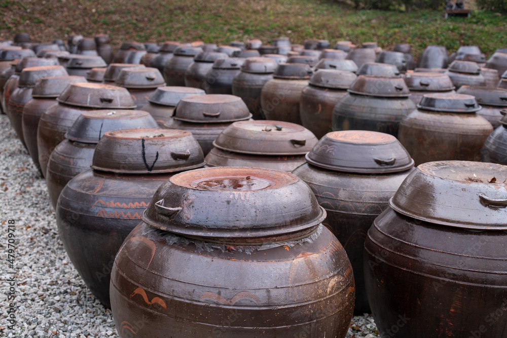 Korean traditional house and Jangdokdae. 한국의 전통가옥과 장독대.
