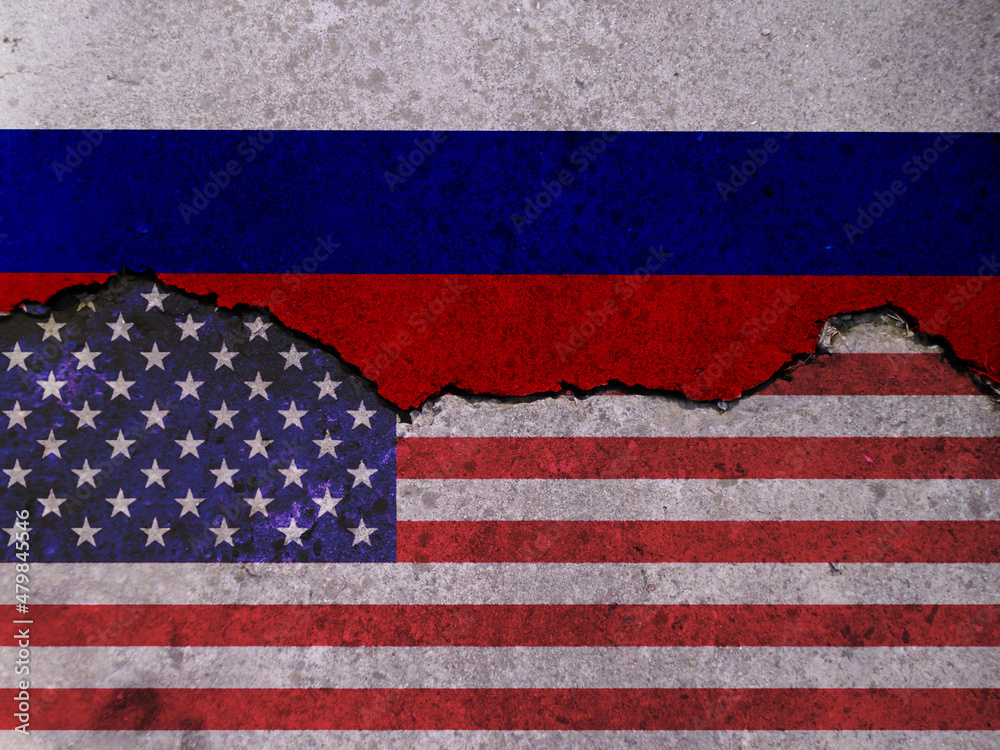 flag of USA America and Russia concept of conflict tensions, shipment or free trade agreement