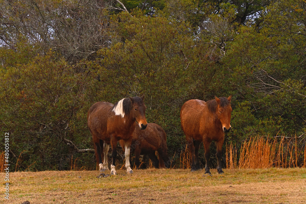 Wet Assateague Ponies in Winter