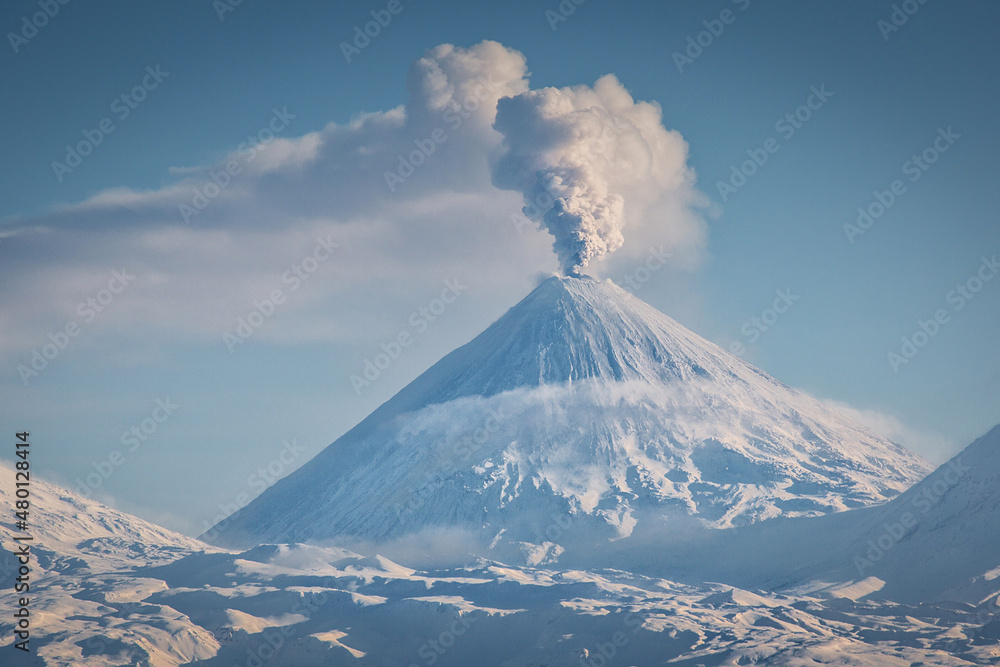 The eruption of the Klyuchevskaya Sopka volcano in Kamchatka