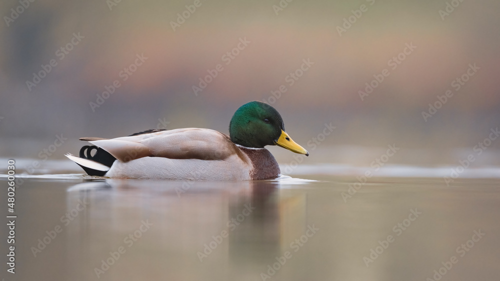 Männliche Stockente (Anas platyrhynchos) auf einem Fluss