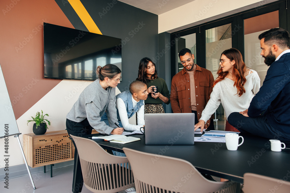 Diverse businesspeople discussing some reports in a boardroom