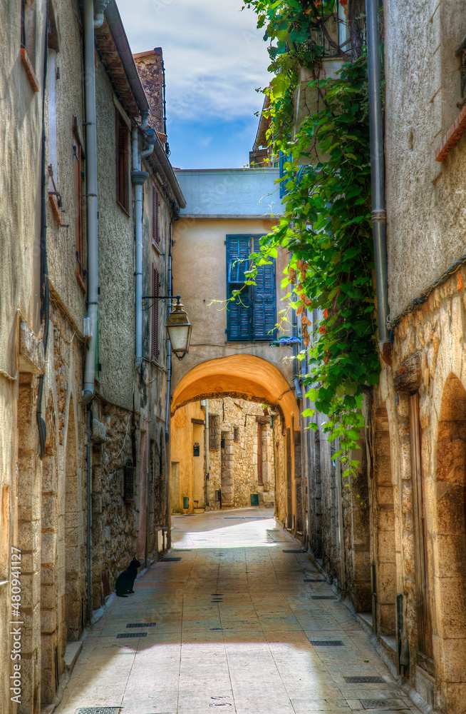 Narrow Street and Vault in the Medieval Village of Peille, Alpes-Maritimes, Provence, France