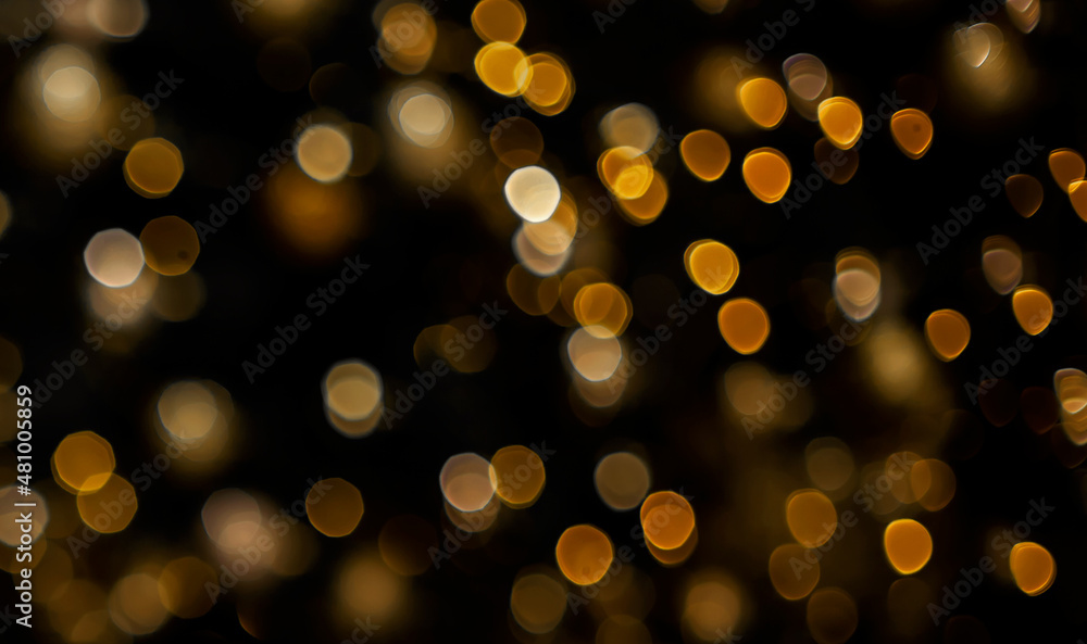 Golden yellow orange bokeh of christmas lights on black isolated background
