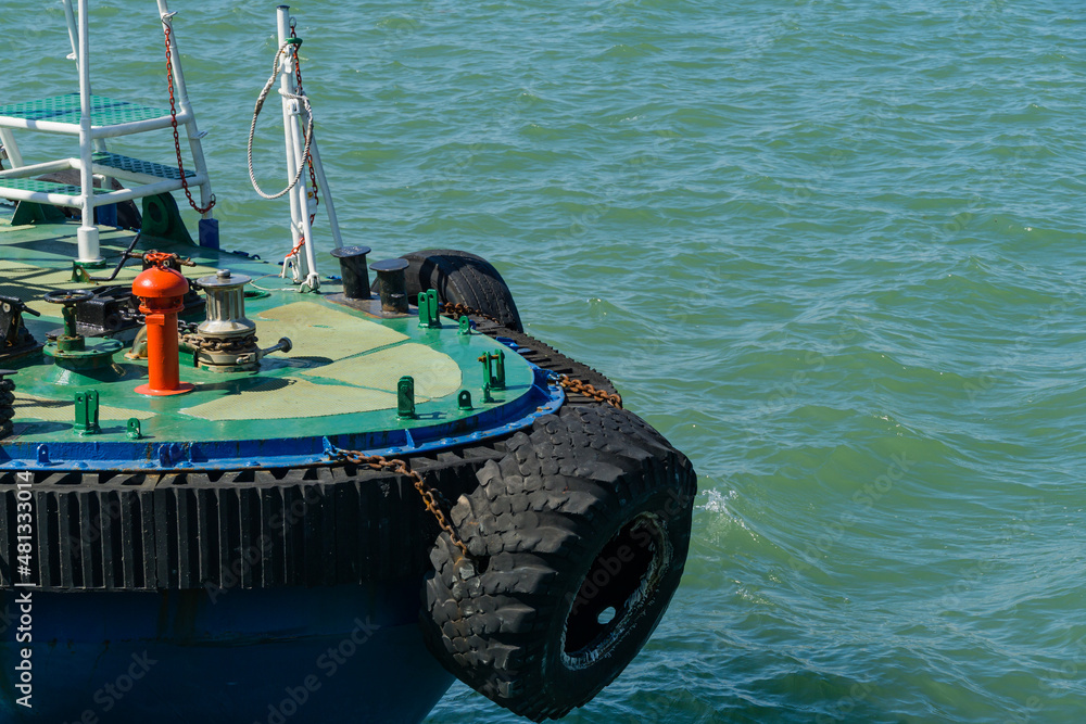 Close-up of details Sea Pilot near Western mole in blue water Black Sea. Novorossiysk, Russia - September 15, 2021