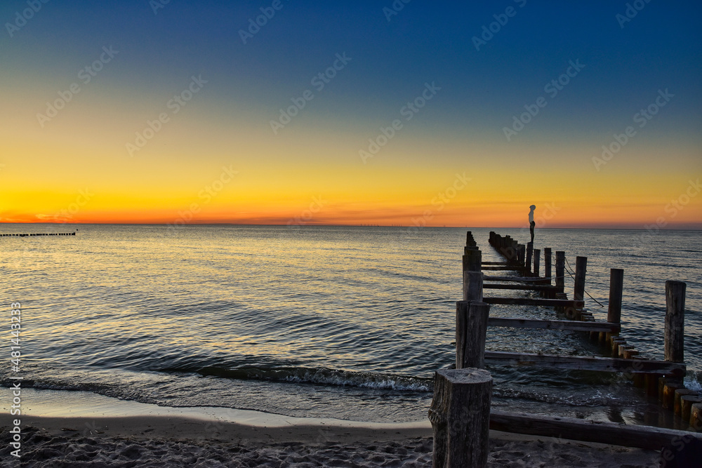Ostsee, Nordsee, See, Meer, Wellen, Buhne, Strand , Sonnenuntergang, Himmel, Wolken , Abend Stimmung, Nacht, blaue Stunde