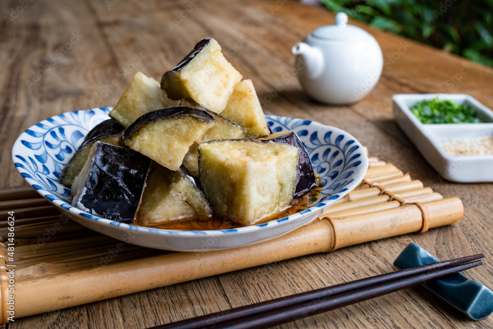 Japanese tempura style deep fried eggplant