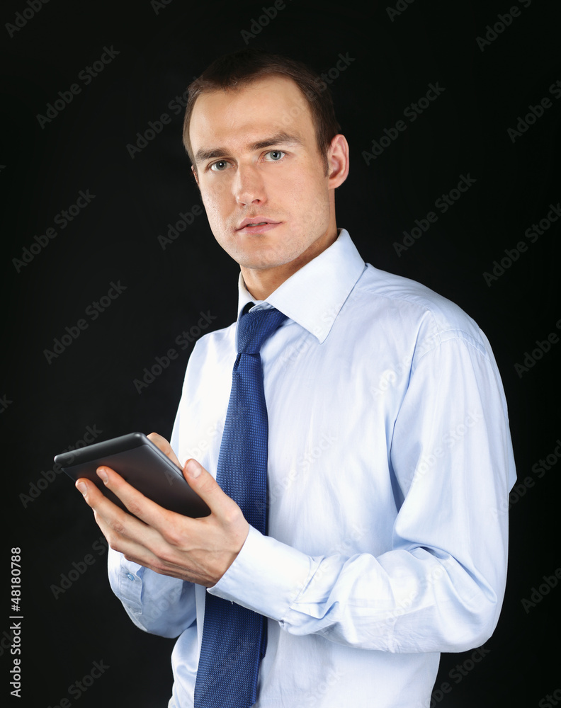 Handsome businessman using computer plane-table